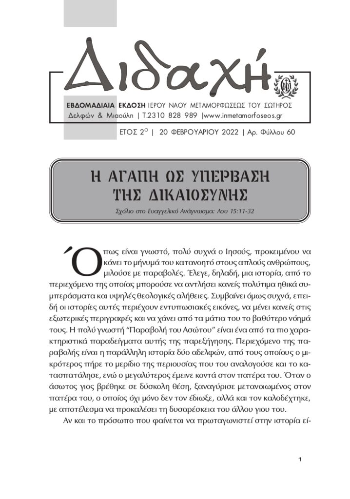 Διδαχή – 20 Φεβρουαρίου 2022